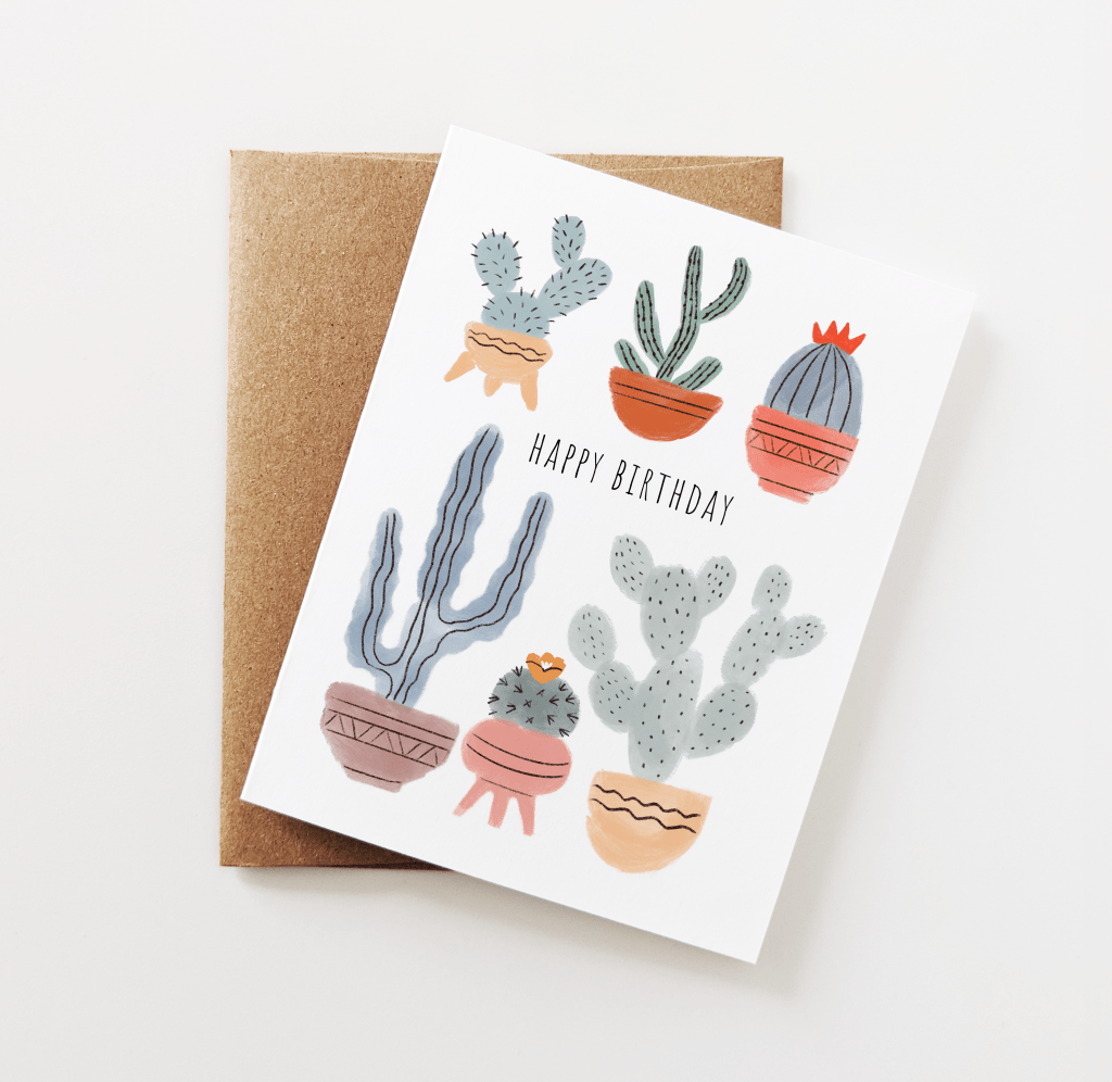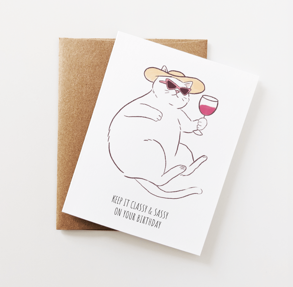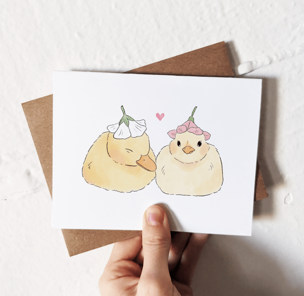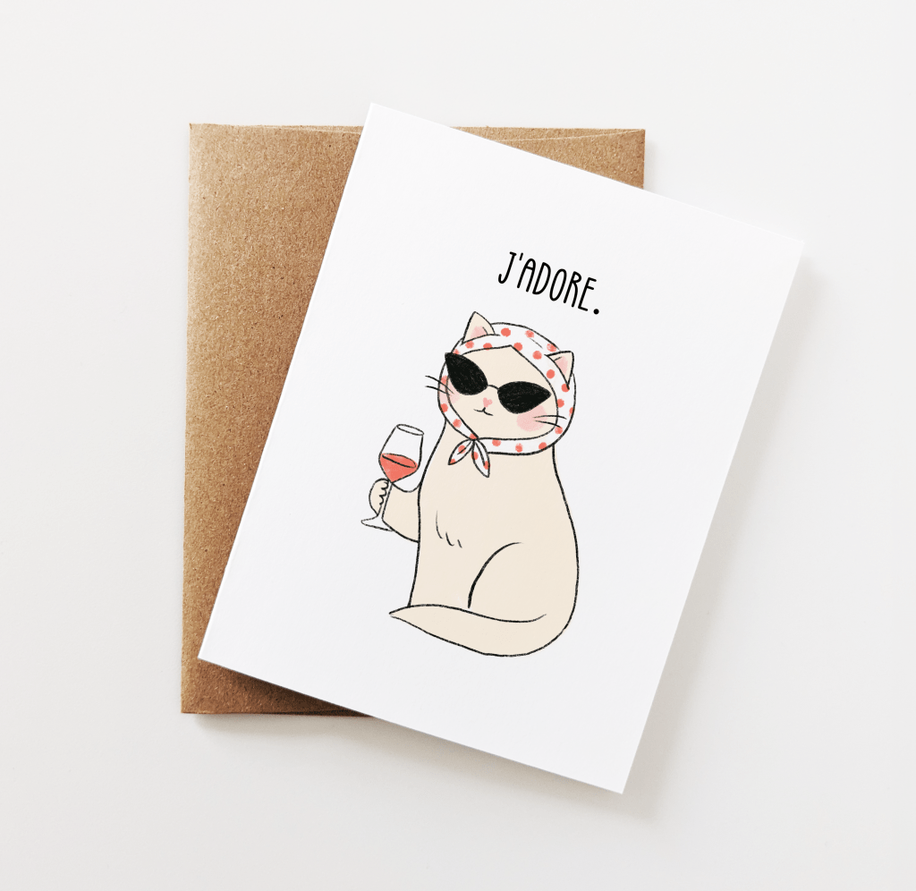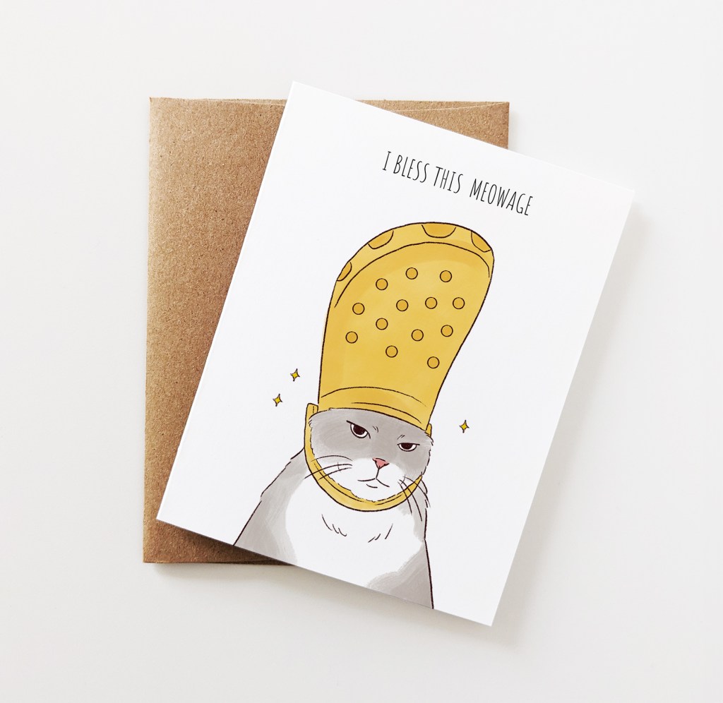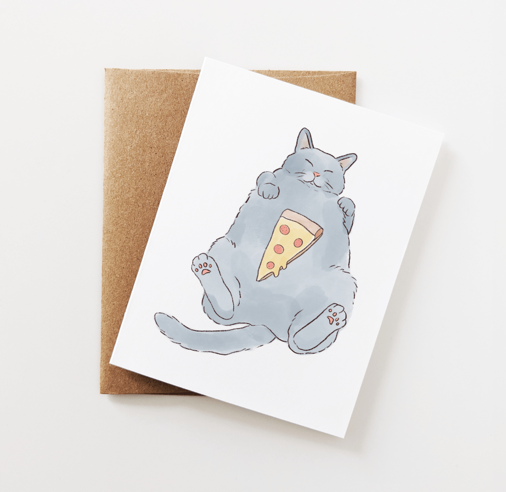 All cards are 5″ x 4.25″ printed on 110lb card stock, and include a recycled envelope and cello bag.