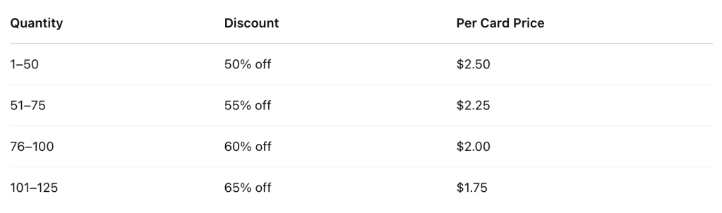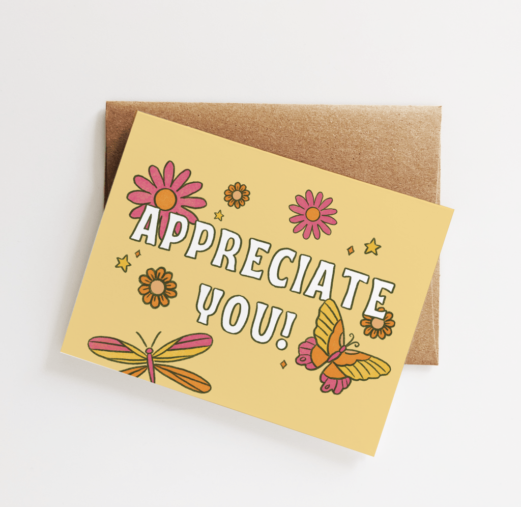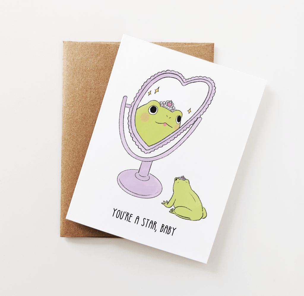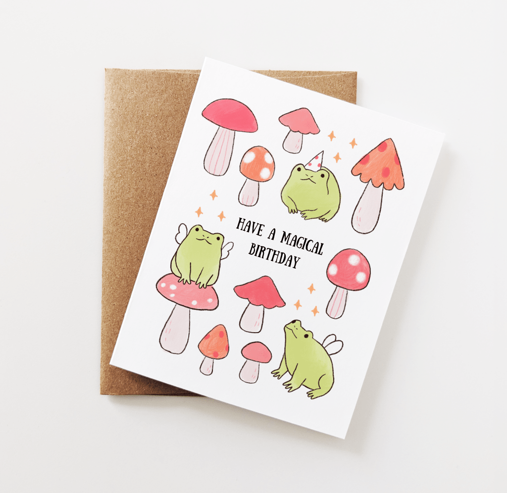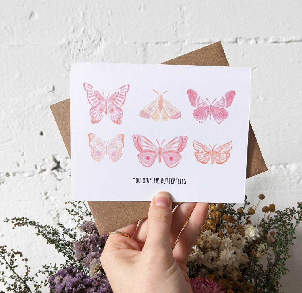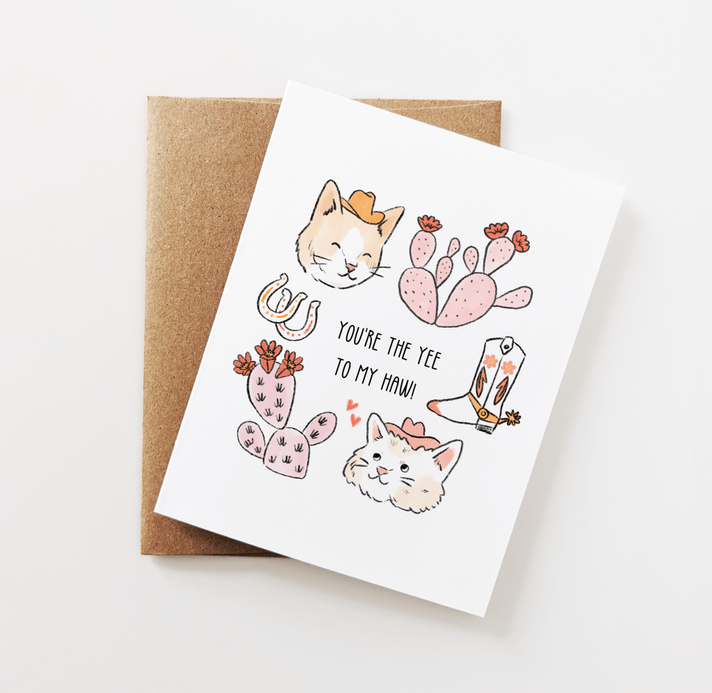 All cards are 5″ x 4.25″ printed on 110lb card stock, and include a recycled envelope and cello bag.